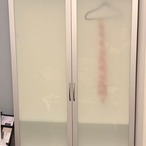 En garderob har 1 hyllplan, 5 trådbackar, 2 lådor.