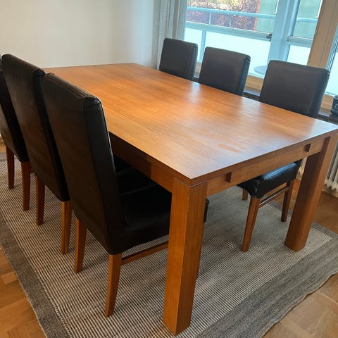 Matbord+Stolar (6st) säljes i väldigt bra skick. Går även att köpa separat antigen bord eller stolarna!