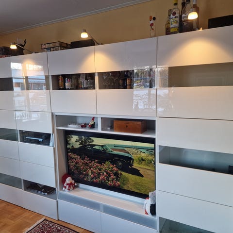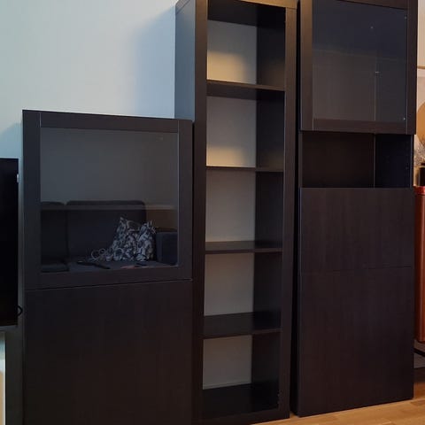 Varje stomme har 6 lådor, 2 skåpsluckor och 8 hyllplan.