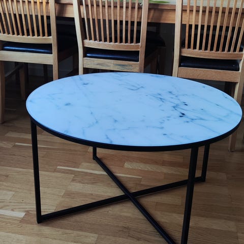Soffbord runt marmor glasskiva retro