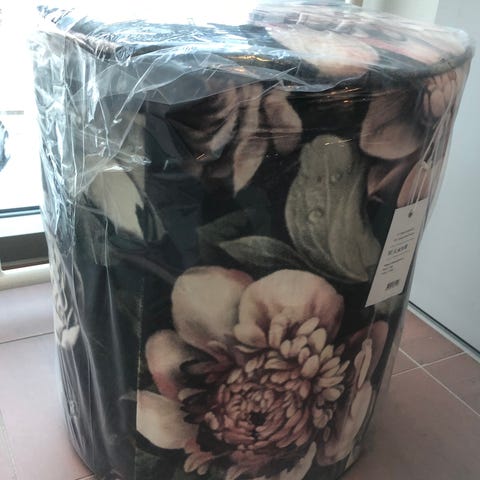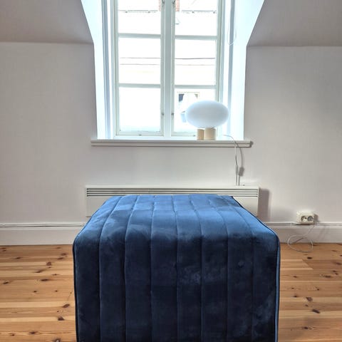 Stilren sittpuff klädd i sammet och med mässingbotten från varumärket Jakobsdals. Den är i fint skick och i stort sett aldrig använd, utan har stått i ett extra rum. Finns ingen fläckar eller slitsage på den. Sittpuffen är stabil och skön att sitta på, perfekt som en extra sittplats i ett vardagsrum när man är flera.