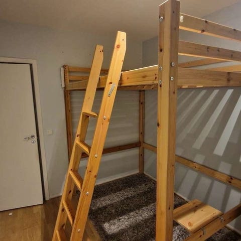 Ikea småstad i bra skick. Stolen från Kinnarps får ni med om ni vill. Även en madrass från IKEA. Säljes som på bilden, monterad. Så kan ni montera ner så mycket som behövs.