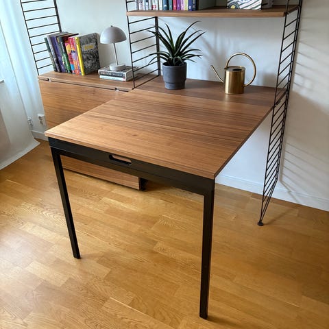 Svart fällbord i ask till stringhylla inklusive gavlar säljes.