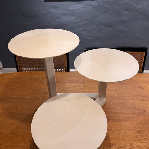 Tårtställning med fem fat i bra skick. Faten kan flyttas och tas bort om man har färre tårtor.