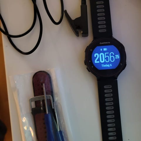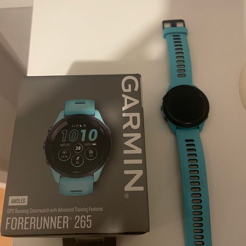 Garmin Forerunner 255 är en svart sportklocka med pulsmätare och GPS-funktion. Inköpt förra året, orderbekräftelse finns kvar. Laddare ingår.