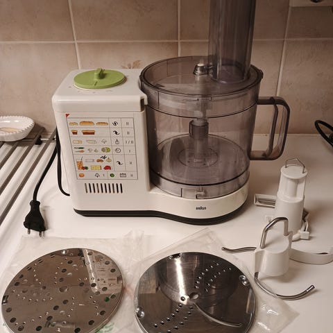 Knappt använd matberedare, alla tillbehör finns på bilderna.