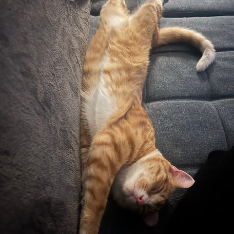 Han älskar att gå ut på promenad, helst utan koppel, och att avsluta dagen i en varm famn. Han vill gärna ha tillgång till utevistelse, även om han på senare år har blivit mer intresserad av att mysa i soffan än att försvinna ut på långa äventyr.