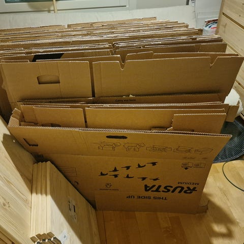 Begagnade flyttkartonger, mixat olika märken.