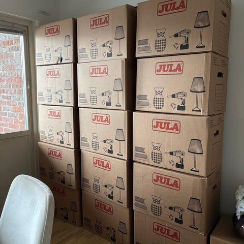 Ca 60 flyttkartonger och blandade storlekar och och skick.