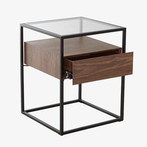 kromat stålrör, unikt för att underskåpet är i lackerad plåt, bordsskiva i lackerat trä,