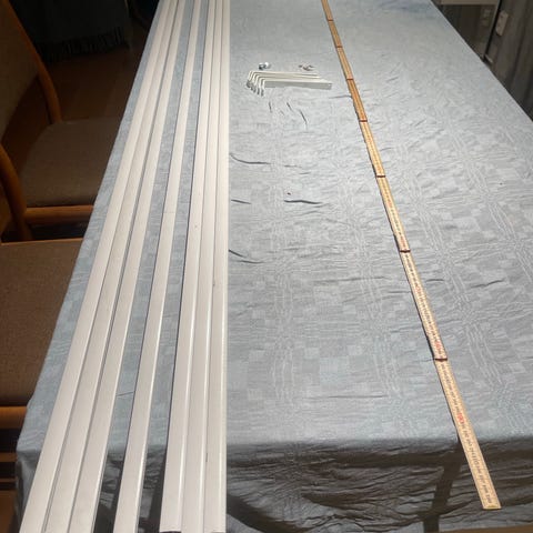 Ingår: 1 vinkel, ankare och fästen till själva gardinen.