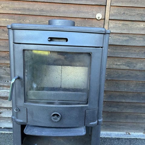 klar att montera in och använda, höjd ca 170 cm , rökutgång höjd 140 cm