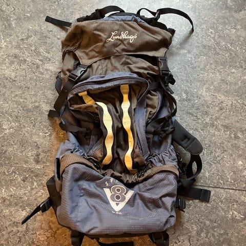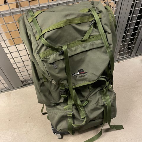 En ryggsäck för långvandring där tält och sovsäck kan medföras Helt ny. Är inköpt vid sportaffären REI i Kalifornien.