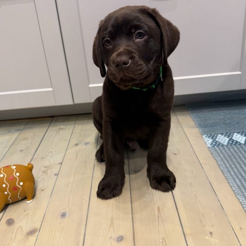 Greta är en ung (född mars 2025), glad, social, frisk och vänlig labradortik. Hon är också en hund med ett självförtroende utöver det vanliga, hennes självständighet är en tillgång för den som söker en hund med stor potential. Hon har en utmärkt naturlig avknapp. Hon trivs bra i sitt eget sällskap med andra ord, och kan lämnas ensam utan någon som helst separationsångest.