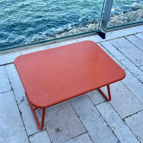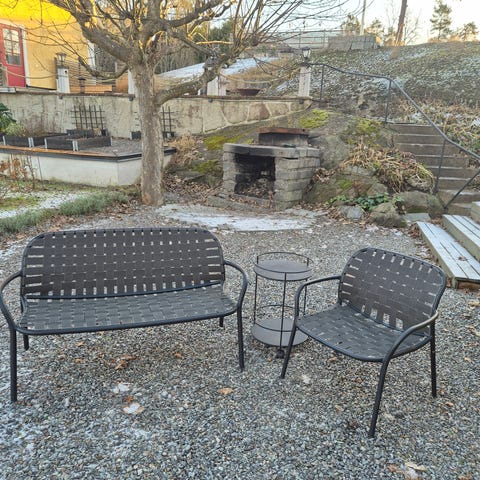 Soffa i aluminium med nätstruktur, avsedd för två personer från Fermob i mycket bra skick. Färg mörk lila. Små tecken på användning finns längst benen (kolla bilder). Passar för utomhus och inomhusbruk. Lätt att bära och flytta men ändå mycket väder tåligt! Nypris: 9995:-
