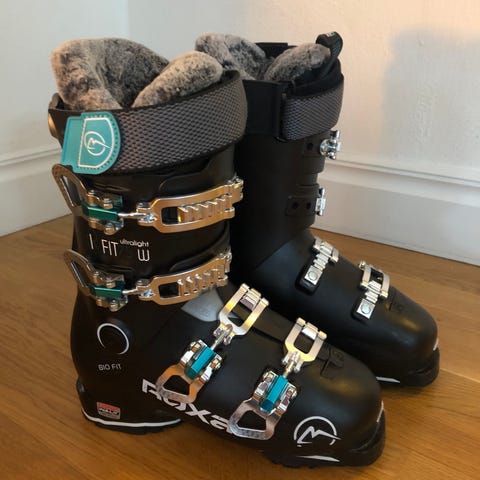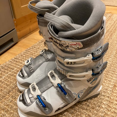 Rossignol Hero J4 Alpinpjäxor, 25.5 295 mm, sparsamt används av en åkare.