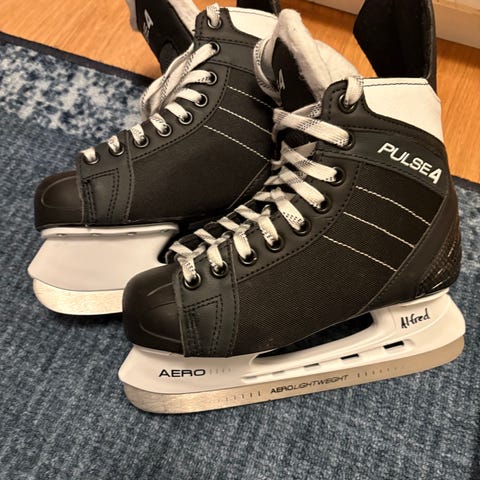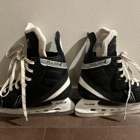 Pulse4 ishockeyskridskor för barn i storlek 37. Skridskorna är utformade för ishockey och har en svart design med vita detaljer.