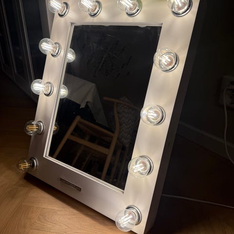Sminkspegel med led lampor. Du kan välja varmt eller kallt ljus. Fint skick, inget att anmärka på.