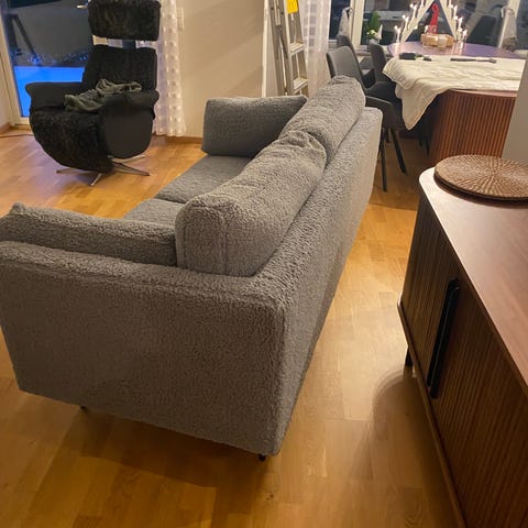 Säljes en 2-sits soffa med teddyklädsel i absolut nyskick. Sittdyna och rygg i skum. Ben i massivt trä. Nypris 3699 kr. Mitt pris 2000.