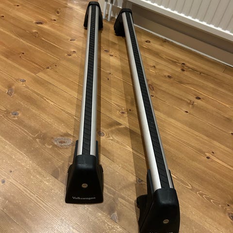 Mont Blanc takräcke passande till Volkswagen PASSAT VARIANT 2014 Alltrack och ett av okänt fabrikat passande Kia e-Niro 2020. Säljes separat för 800:- /per par.
