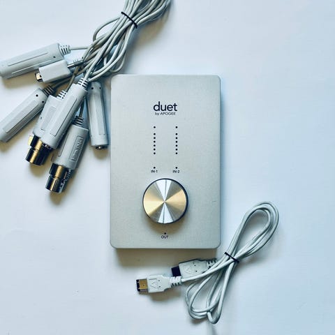 Rode AI-1 ljudkort med USB-C-anslutning och kontroller för ljudnivå. En kompakt enhet för inspelning och ljudhantering.