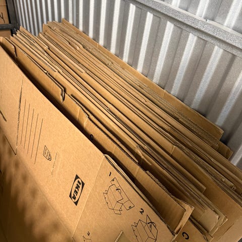 47 st standard flyttkartonger från Bauhaus. Samtliga har handskrift från vår flytt.