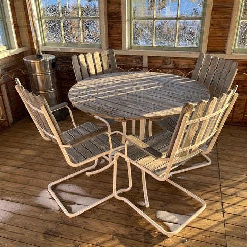 Konstroting grupp med sex stolar och stort bord inköpt nytt i maj I fjor med sittdynor gruppen är I ny skick och den finns I Vaggeryd