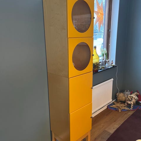 Skåp i trä med glasdörrar