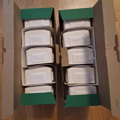 7 enkla vägguttag jordat vit med porslinsring för infällt montage ny 320 kr styck (2 trasiga vägguttag se bild 2 (går att köpa nya på Byggfabriken för 95 kr) PRIS: 1000 kr för alla
