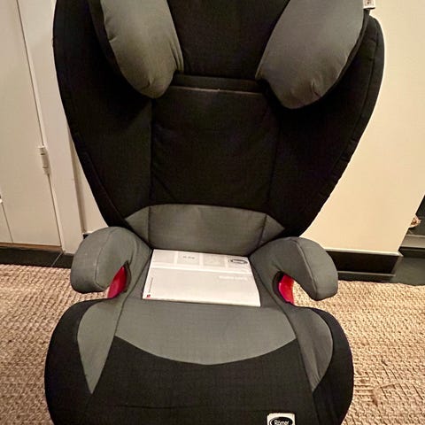 Britax Römer barn bilstol med en storlek anpassad från 15 upp till 36 kg. Produkten är utformad för att användas som bilbarnstolskudde. Den har ISO fix och kan enkelt fästas i vanliga bilstolen. Sidokrockskydd. Kan justeras i höjdled enligt barnets längd. Har använts av ett barn sedan ny, och är i mycket bra skick.