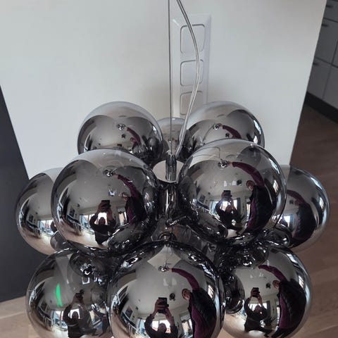 Tre pendlar på en skena. Lampan är oanvänd och kan hämtas i Hässleholm.