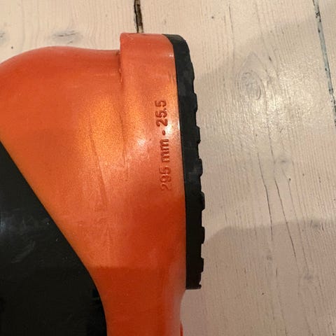 Pjäxorna är använda men i fullt fungerande skick, inga sprickor eller defekter – bara vanliga ytskiktsspår efter användning.