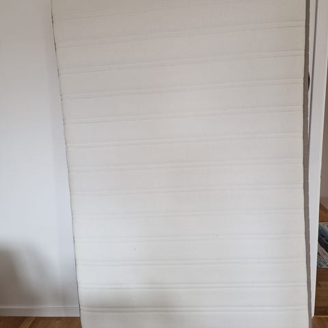 105 cm bred säng med ram man enkelt skruvar ihop. Själva madrassen är 105 cm bred, 200 cm lång och 24 cm djup. Man får lägga på ca 10 cm på höjd och bredd inklusive ramen för att ha goda marginaler. Bra skick, hel och ren utan större skavanker. Madrasskydd syns ej på bild men ingår. Bäddmadrass ingår ej. Hämtas här och betalas via Swish på plats, ej kontanter.