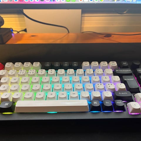 Keychron Q1 HE ISO RGB entusiast-tangentbord säljes då det inte längre används. Mycket bra skick och extremt väl omhändertaget. Andra keycaps har använts nästan från start, så de originalmonterade keycapsen är knappt använda alls. Pedantisk ägare – med andra ord inga spår av nötter. Alla moddingtillbehör är oanvända. Införskaffat 8 december 2024.