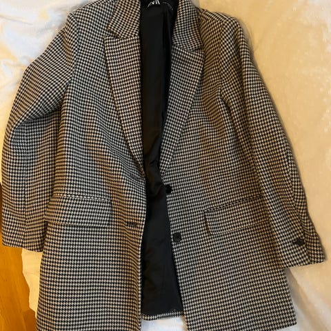 ZARA grå tweedblazer med dragkedjor – cropped, strl M