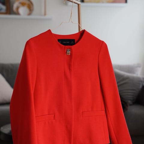 Blazern har markerad midja, zip framtill samt dekorativa fickor med dragkedja. Perfekt både till jeans för en mer avslappnad look eller uppklädd till kjol/byxor.