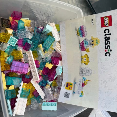 LEGO Classic byggsatser med blandade bitar i olika färger och former. Innehåller flera påsar med klossar och tillbehör för kreativt byggande. Levereras i en gul förvaringslåda.