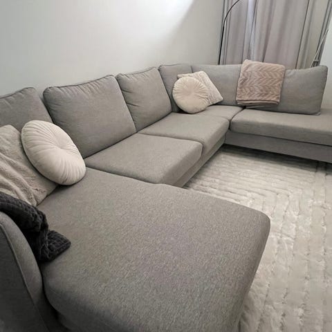 Vi säljer vår hörnsoffa SVALBARD, höger, ljusgrå. Vi köpte den för 8000 kr och säljer den nu för bara 2000 kr!