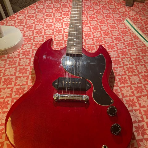 Epiphone les paul junior elgitarr i mycket gott skick. Sparsamt använd. Säljes pga flytt och används ej.