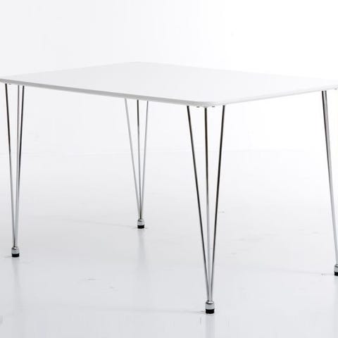 IKEA matbord i vit färg med rundade hörn. Bordet har en slät yta och fyra ben. Passar för matplats eller vardagsrum.