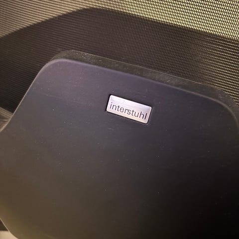 Kontorsstol från interiorna, vit skinnklädsel. Höj och sänkbar. Något missfärgad. Se bild, i i övrigt fint skick