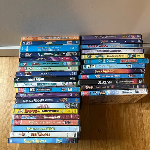 Filmer för små o stora barn i fint skick. 61 filmer =150kr alternativt