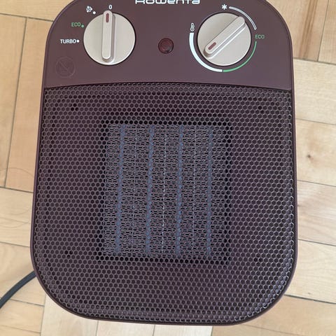 Proklima elektrisk värmefläkt med två reglage för inställning av värme och fläktstyrka. Liten och portabel design med strömkabel för anslutning till eluttag.