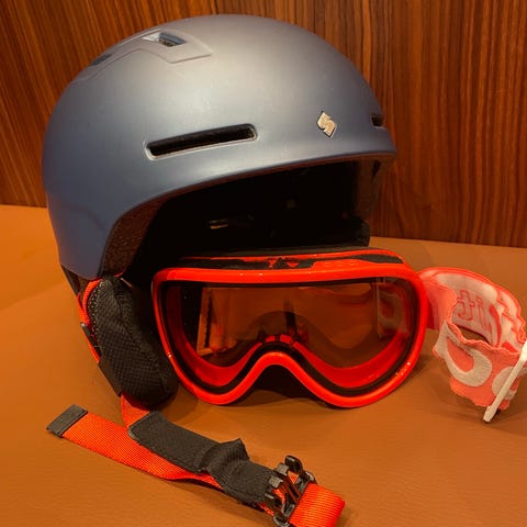Köpte på en skidresa i vintras då jag glömde min hjälm hemma, använd kanske fem gånger. Jag tror att jag har en svart skärm jag kan leta upp också, det går att ha den orangea som syns perfekt en bild, en svart eller åka helt utan skärm.