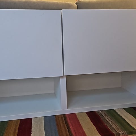 IKEA skåp, finns inte längre kvar på ikeas hemsida. Dörrarna öppnas utåt och går att skjuta in i skåpet så att skåpet blir mer av en hylla.