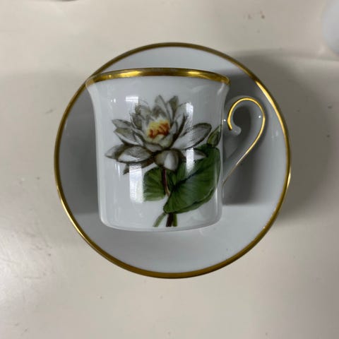 6 koppar och 6 fat i kungsblått med sagomotiv. Limiterad utgåva.