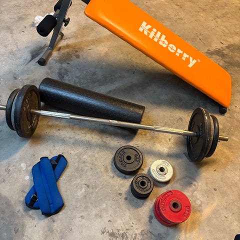 skivstång och 6 vikter