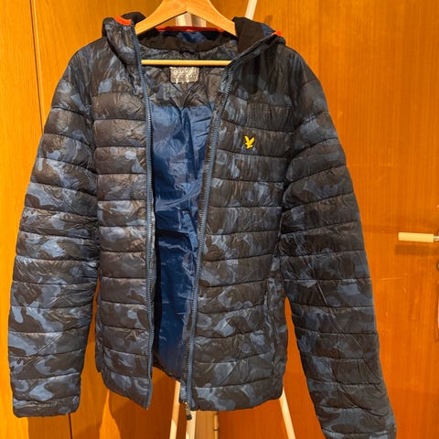 Lyle & Scott jacka i läder med flerfärgad design. Storlek L. Passar för män. Jackan är avsedd för utomhusbruk och har en robust konstruktion i lädermaterial.