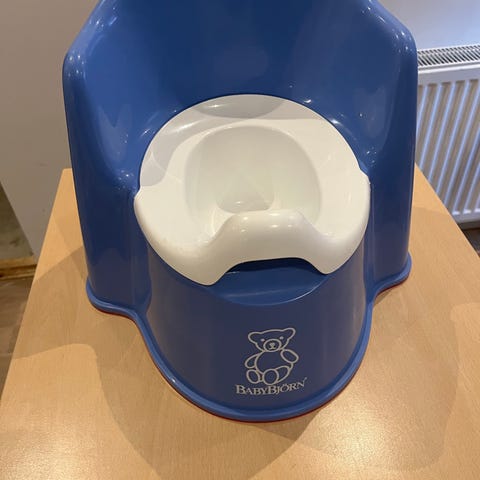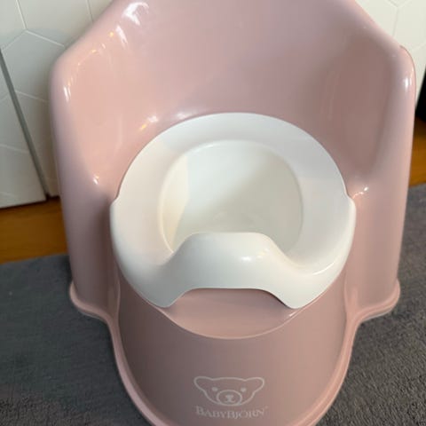 Babybjörn Potta barnstol i grön färg med vit innerdel. Tillverkad i plastmaterial. (Finns två st likadana ifall behov skulle finnas)