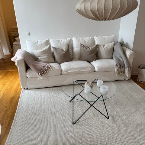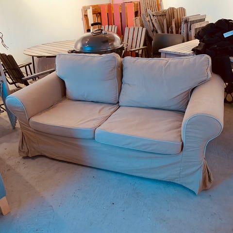 Ektorp 2 sittssoffa. Klädseln är Kilanda ljusbeige. Soffan är i bra skick utan några fläckar.